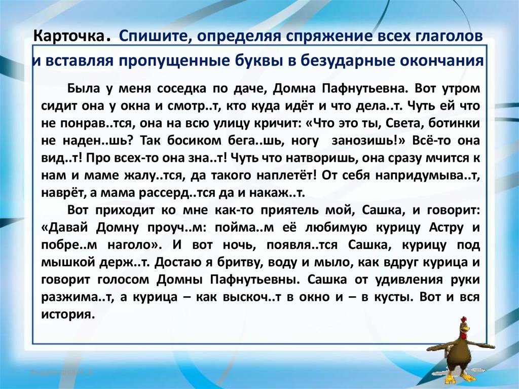 .Карточка Спишите, определяя спряжение всех глаголов