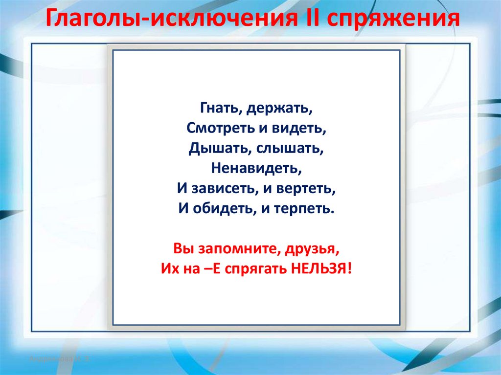 Глаголы-исключения II спряженияГнать, держать,