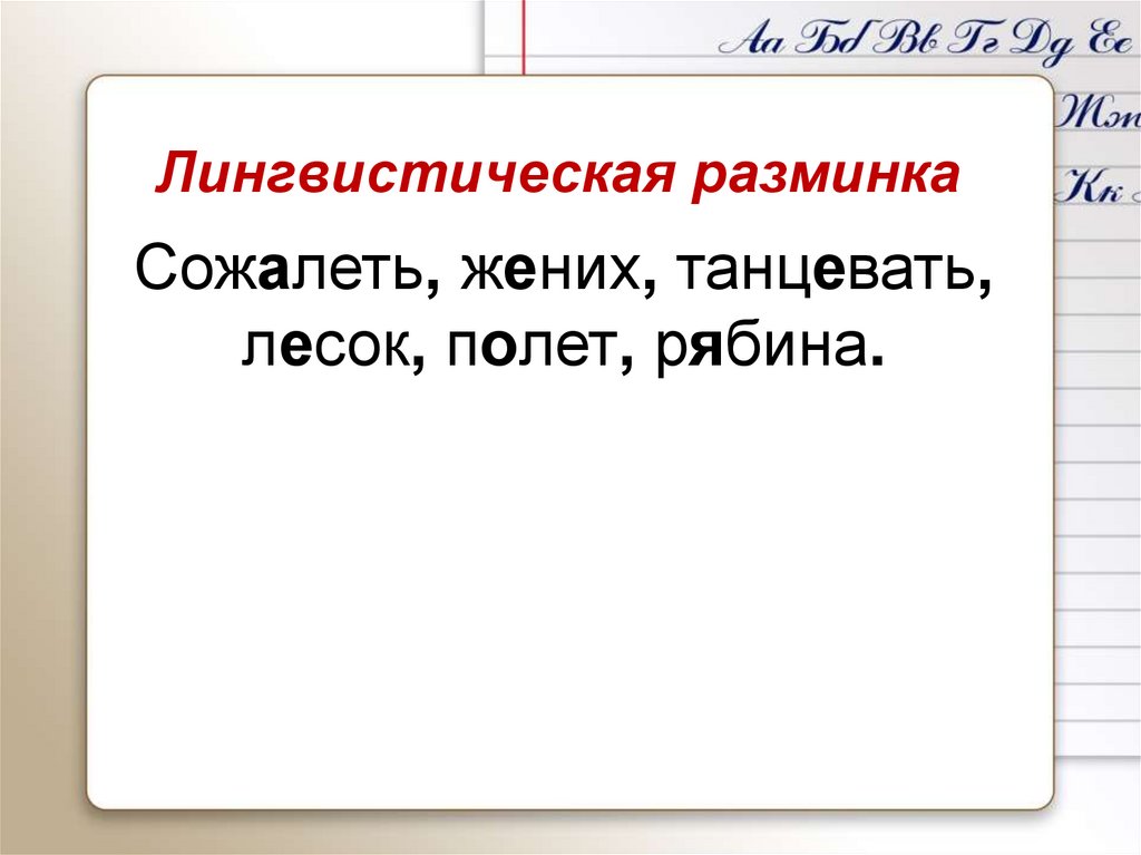 Лингвистическая разминкаСожалеть, жених, танцевать,