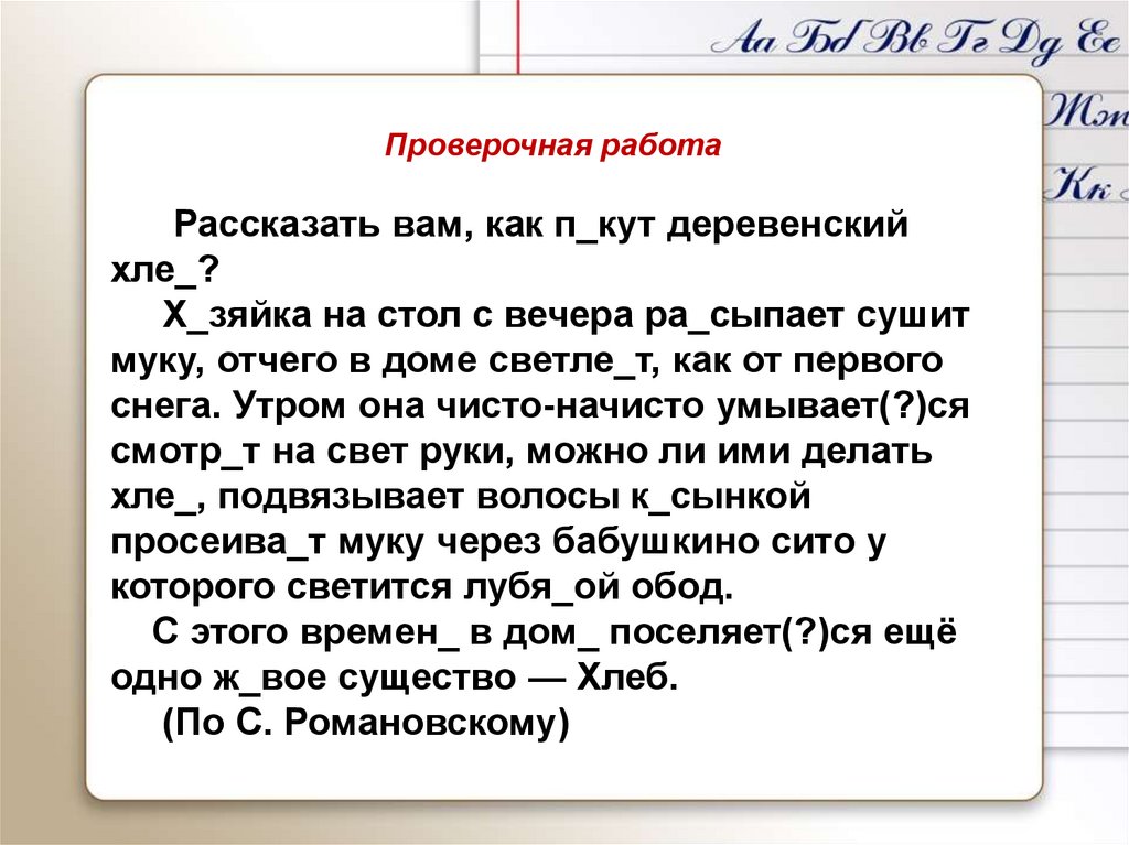 Проверочная работаРассказать вам, как п_кут деревенский