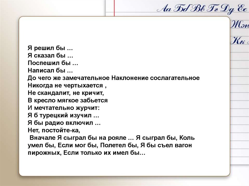 До чего же замечательное Наклонение сослагательное
