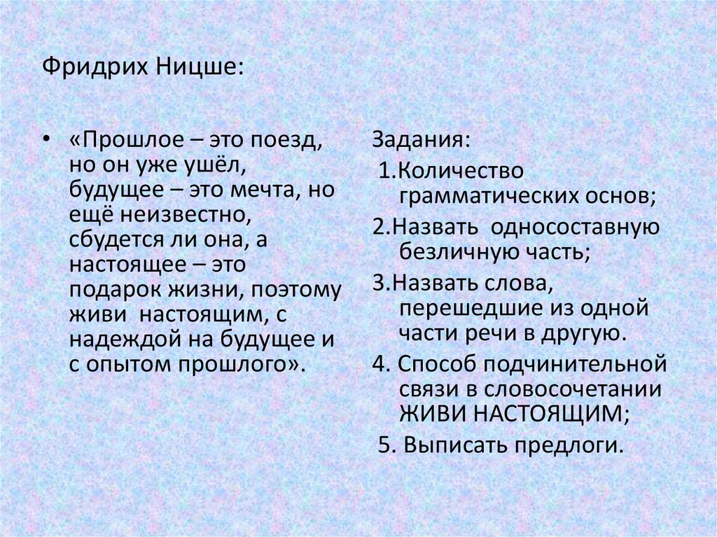Фридрих Ницше:• «Прошлое – это поезд,