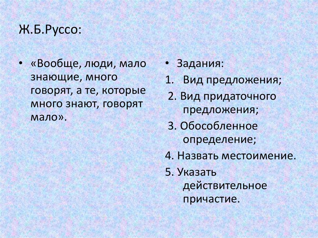Ж.Б.Руссо:• «Вообще, люди, мало
