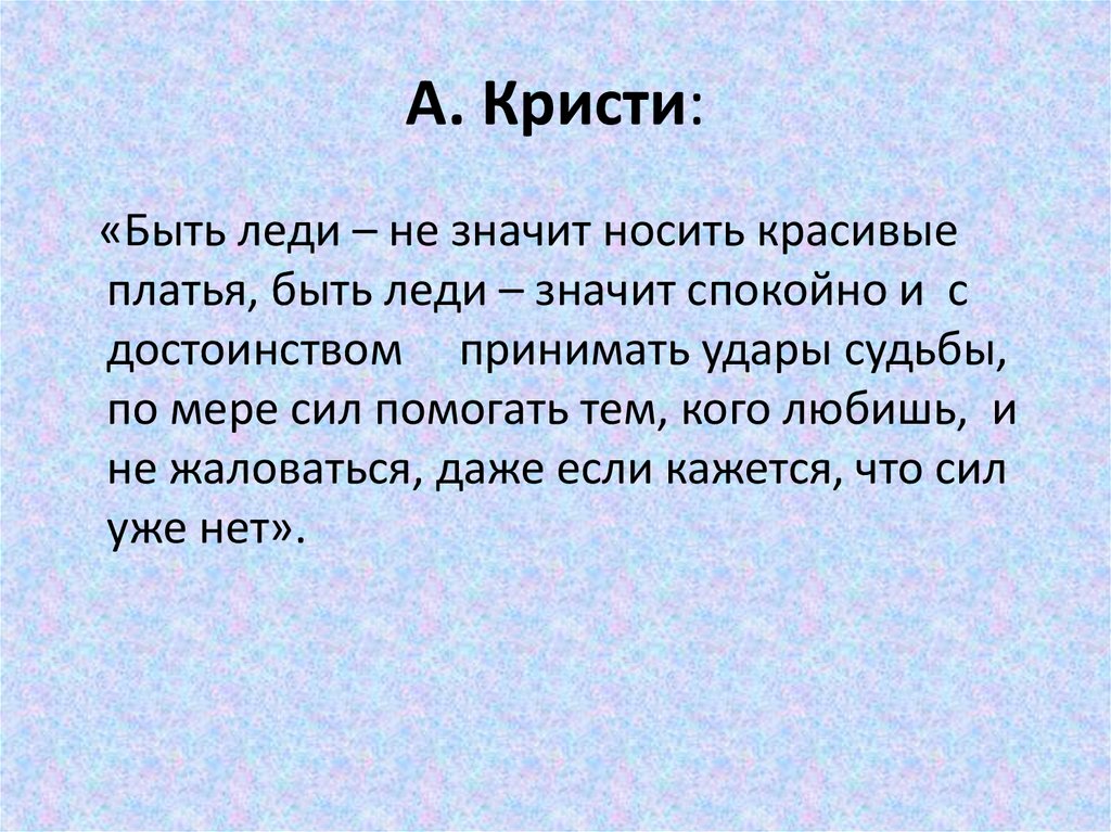 А. Кристи:«Быть леди – не значит носить красивые