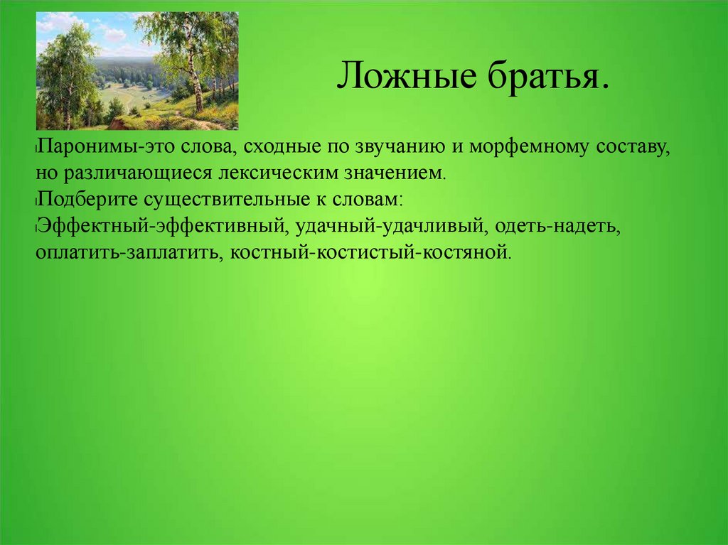 Ложные братья.Паронимы-это слова, сходные по звучанию и морфемному составу,