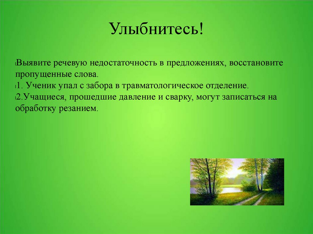 Улыбнитесь!Выявите речевую недостаточность в предложениях, восстановите