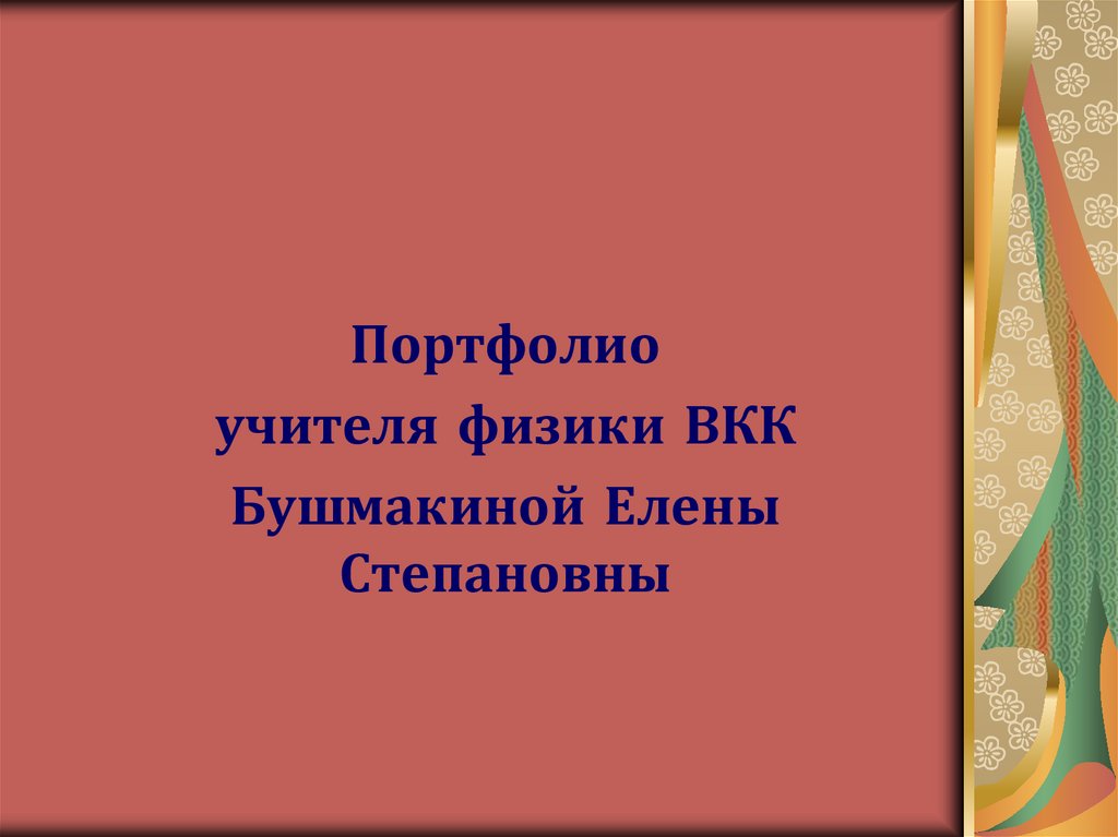 Портфолиоучителя физики ВКК