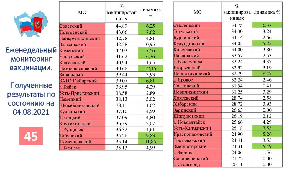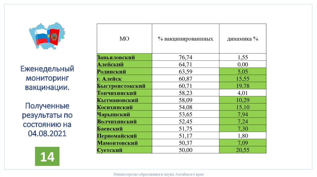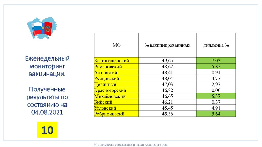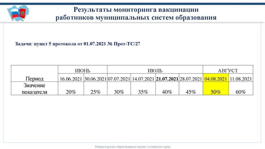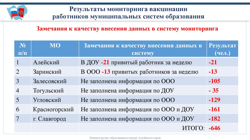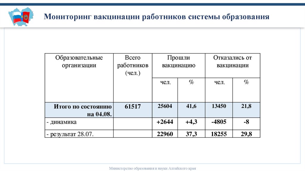 МИНИСТЕРСТВО ОБРАЗОВАНИЯ И НАУКИ АЛТАЙСКОГО КРАЯО проведении мониторинга вакцинации