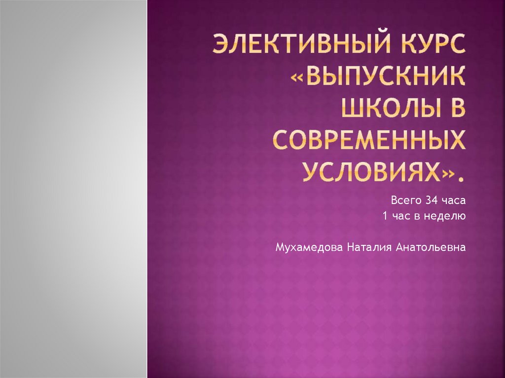 Элективный курс «Выпускник школы в современных условиях»