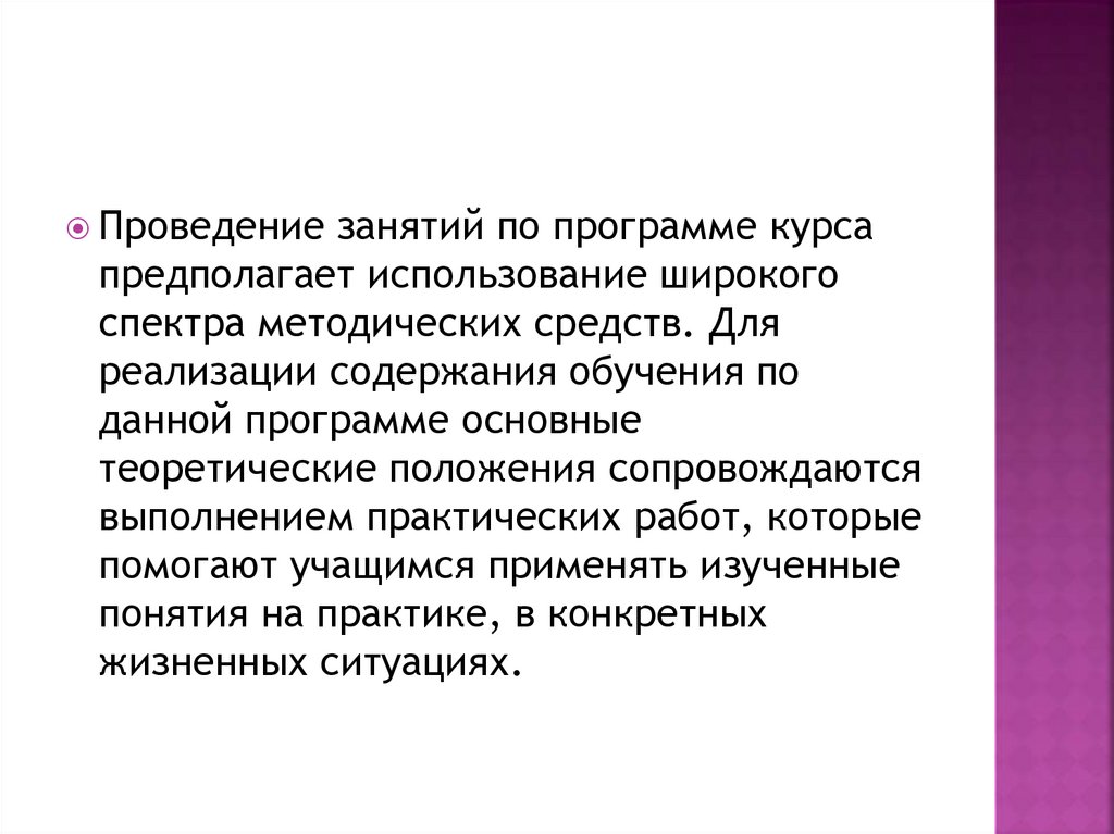 Проведениезанятий по программе курса