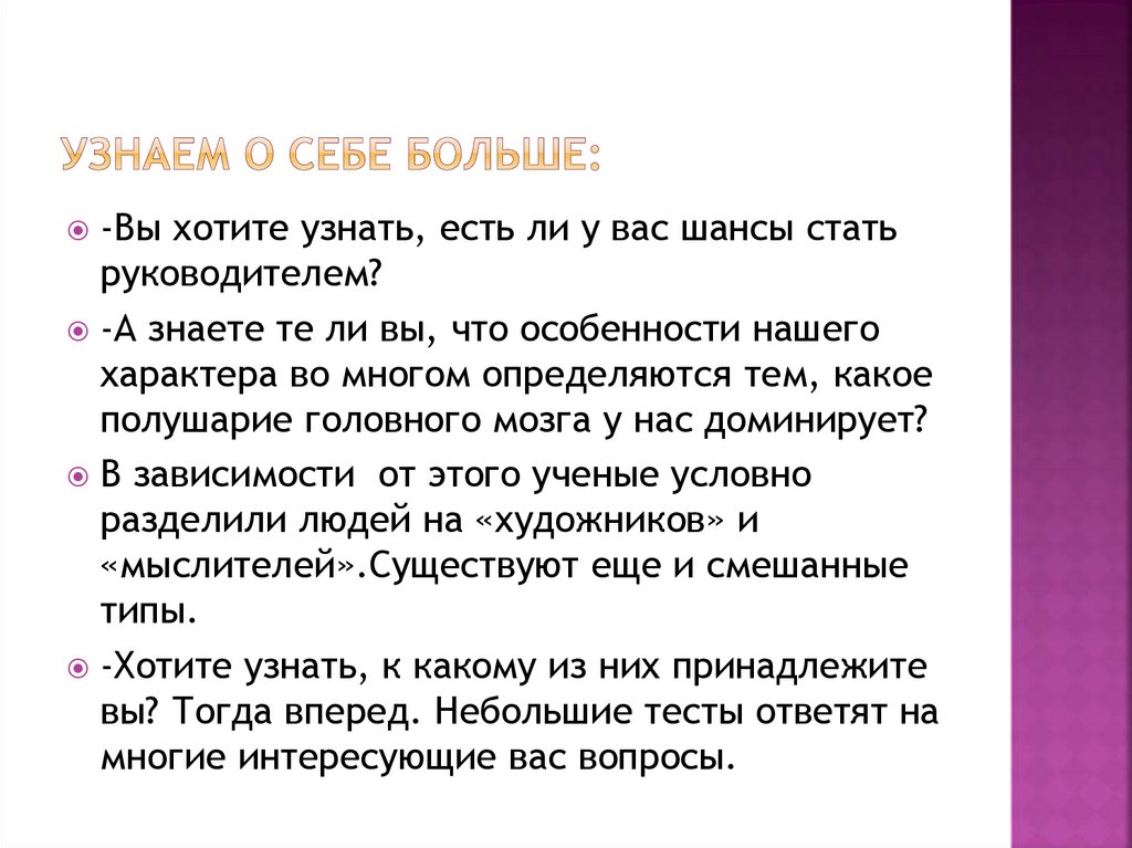 -Вы хотите узнать, есть ли у вас шансы статьруководителем?