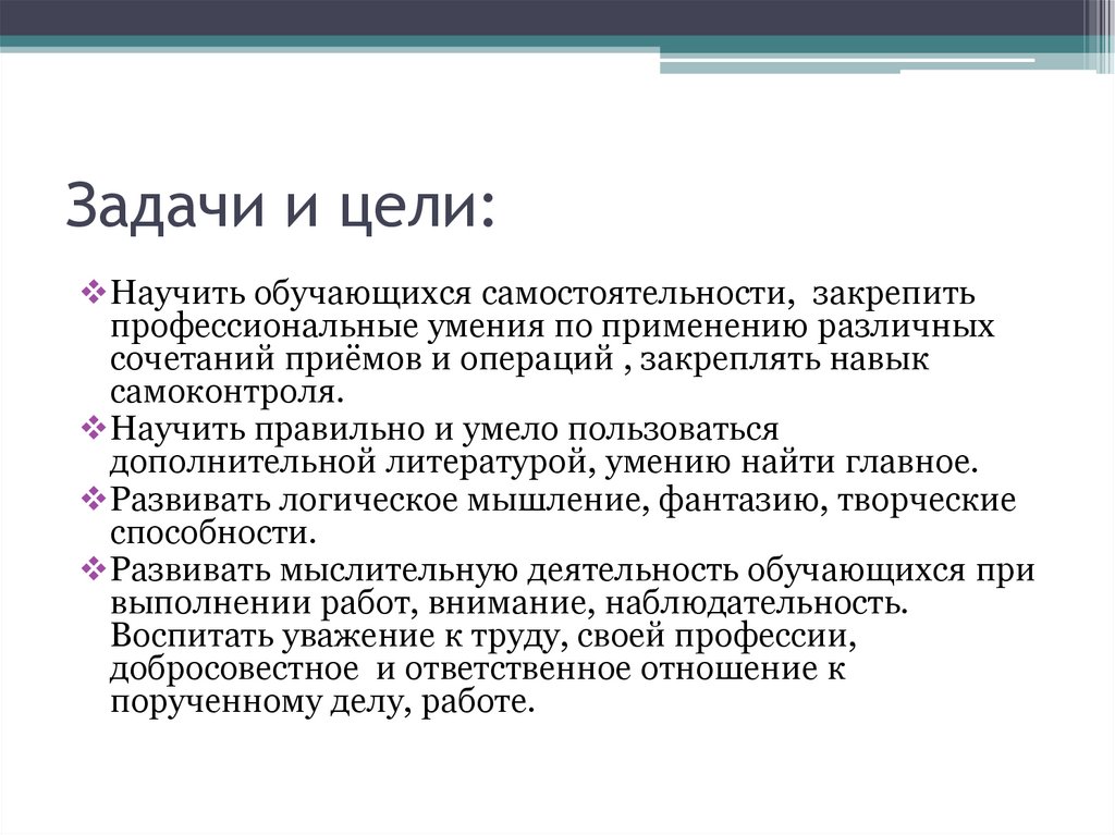 Задачи и цели:Научить обучающихся самостоятельности, закрепить
