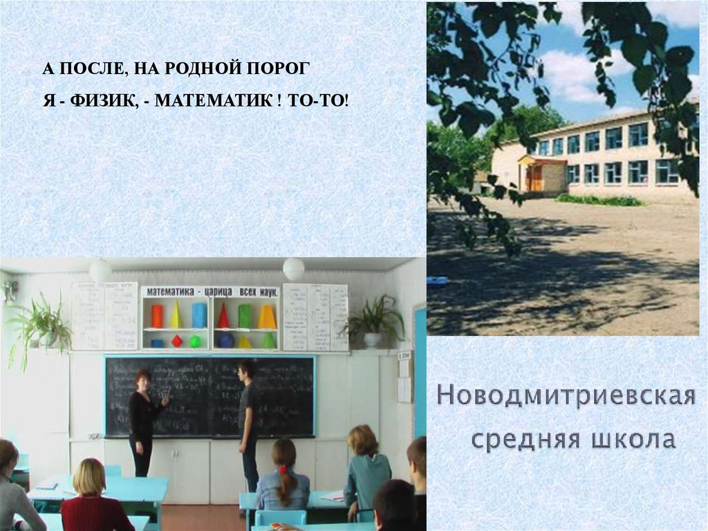 А ПОСЛЕ, НА РОДНОЙ ПОРОГЯ - ФИЗИК, - МАТЕМАТИК ! ТО-ТО!