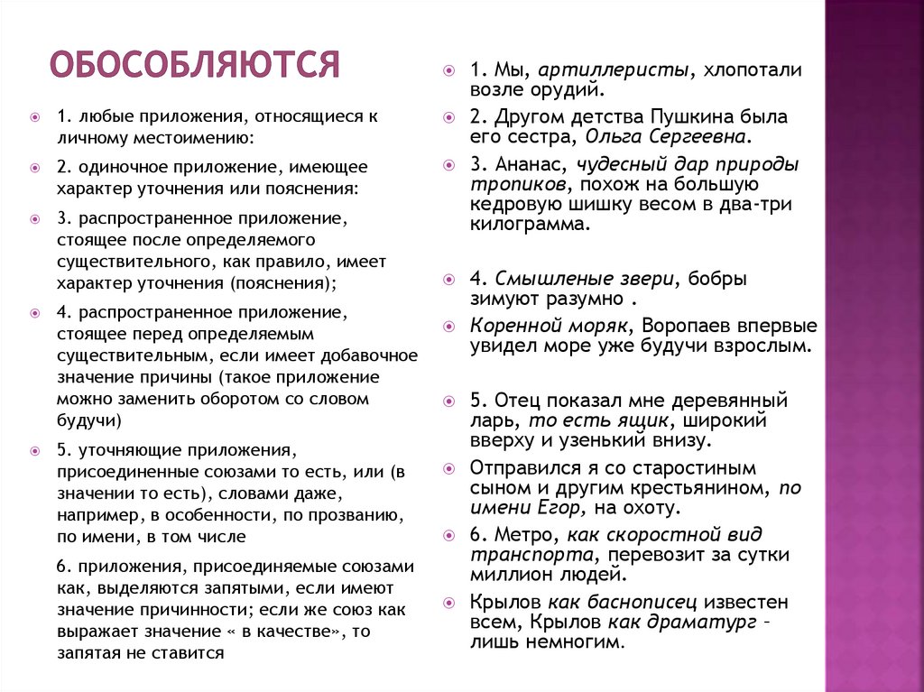 6. приложения, присоединяемые союзами