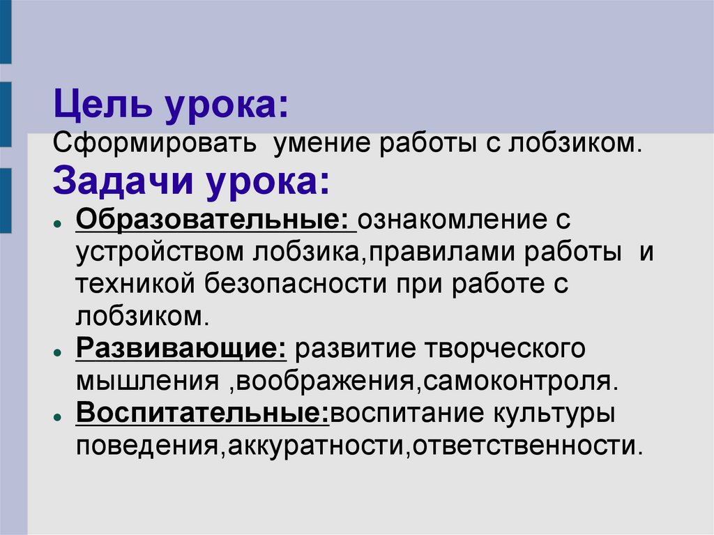 Цель урока:Сформировать умение работы с лобзиком.