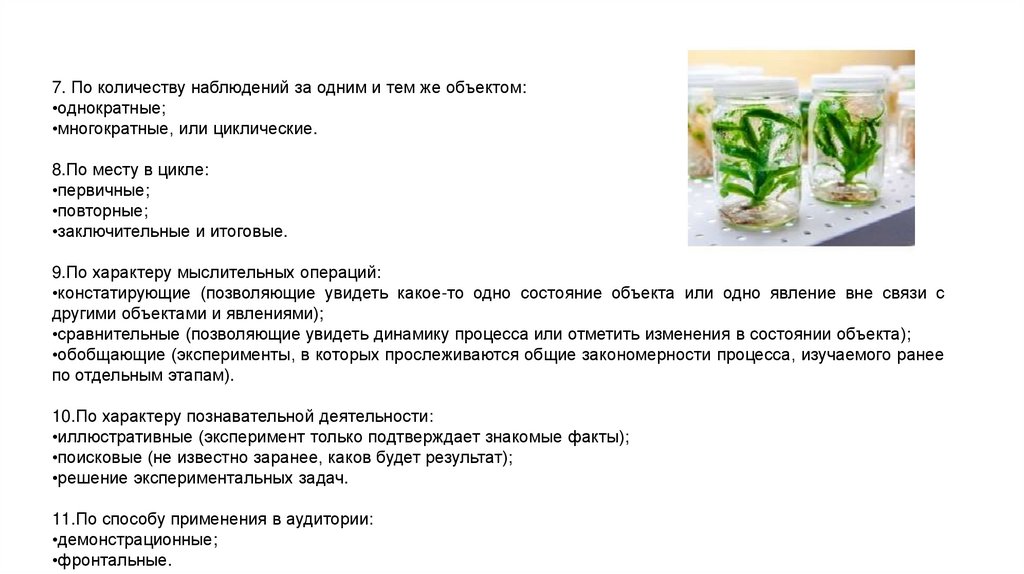 •иллюстративные (эксперимент только подтверждает знакомые факты);