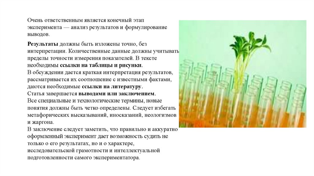 Очень ответственным является конечный этапэксперимента — анализ результатов и формулирование