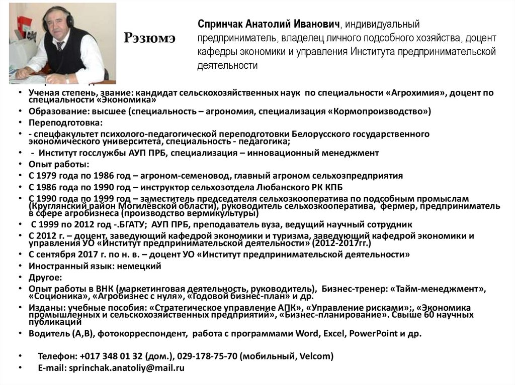 РэзюмэСпринчак Анатолий Иванович, индивидуальный