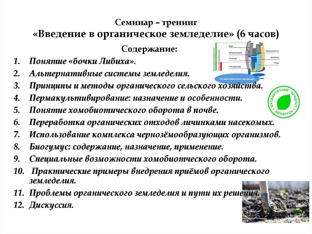Семинар – тренинг«Введение в органическое земледелие» (6 часов)