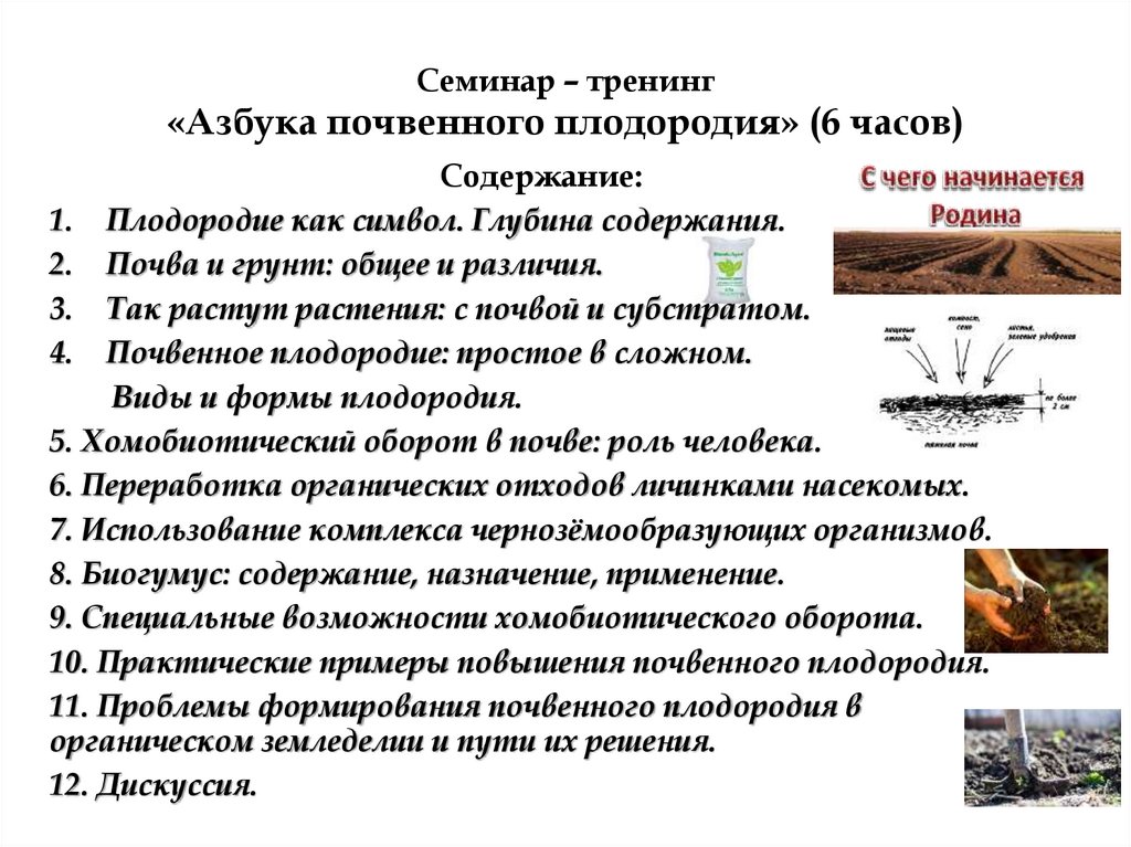Семинар – тренинг«Азбука почвенного плодородия» (6 часов)