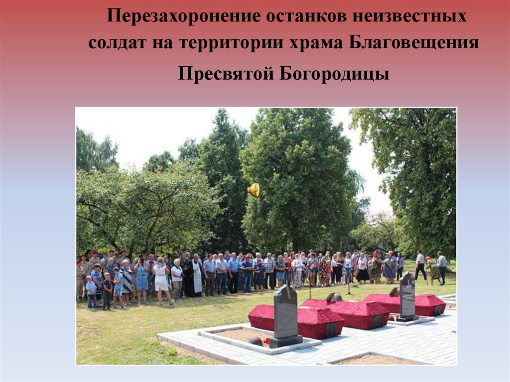 Перезахоронение останков неизвестныхсолдат на территории храма Благовещения