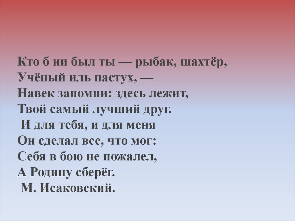 Кто б ни был ты — рыбак, шахтёр,Учёный иль пастух, —