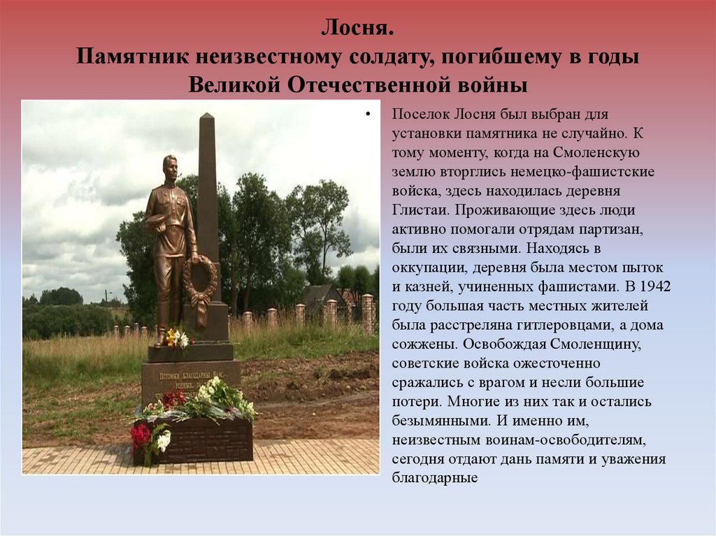 Лосня.Памятник неизвестному солдату, погибшему в годы