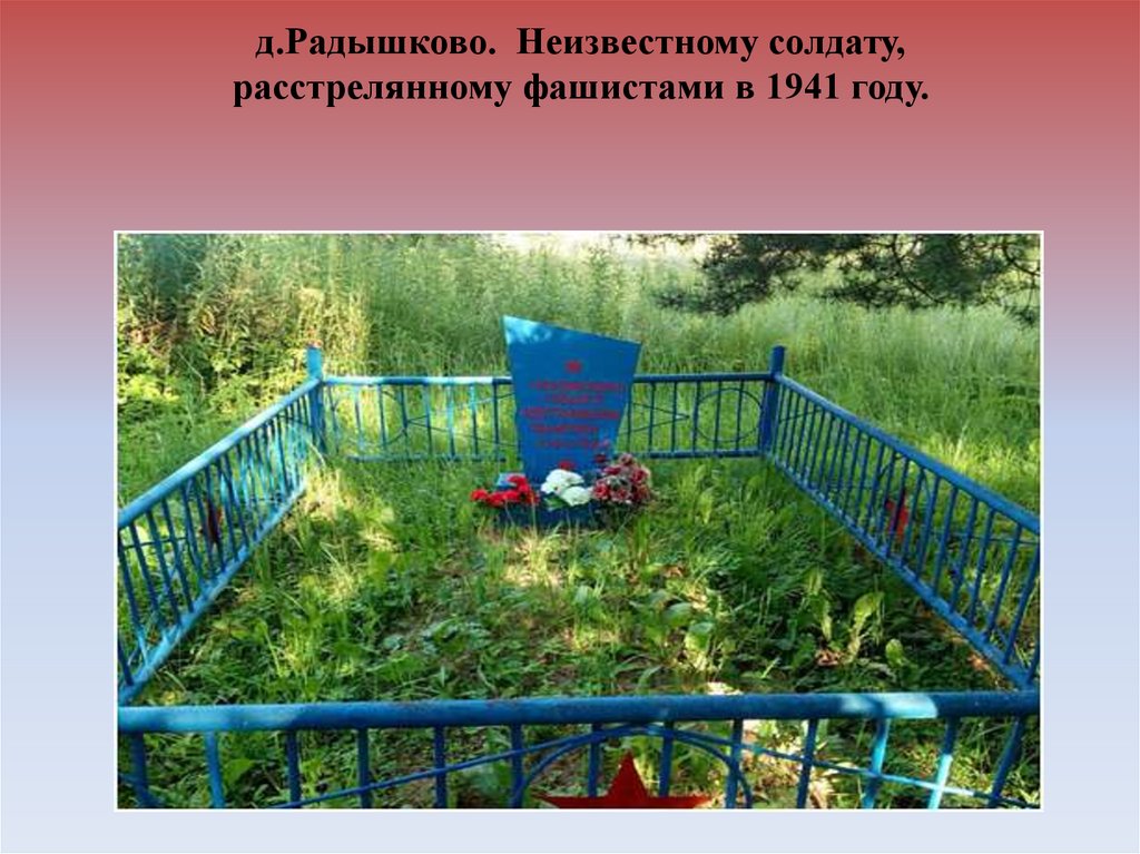 д.Радышково. Неизвестному солдату,расстрелянному фашистами в 1941 году.