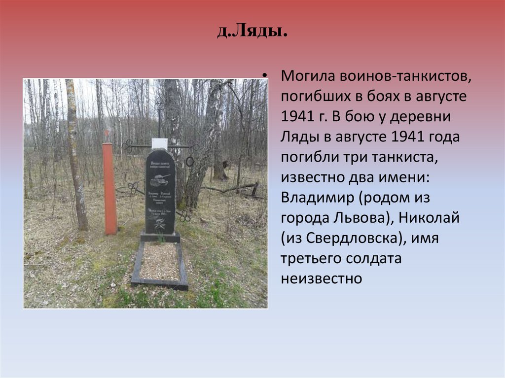 д. Ляды. Могила советского воина,расстрелянного в 1942 году.