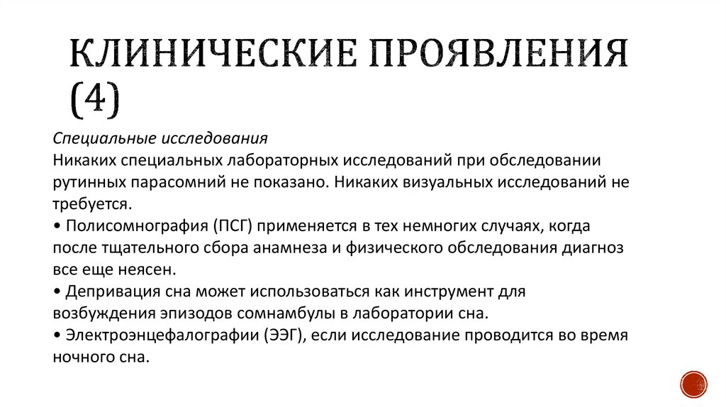 рутинных парасомний не показано. Никаких визуальных исследований не