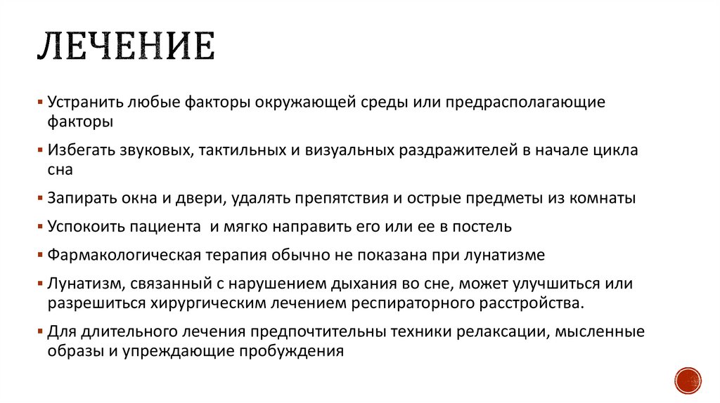 Фармакологическая терапия обычно не показана при лунатизме