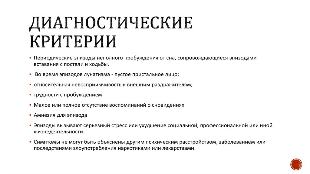 Периодические эпизоды неполного пробуждения от сна, сопровождающиеся эпизодамивставания с постели и ходьбы.