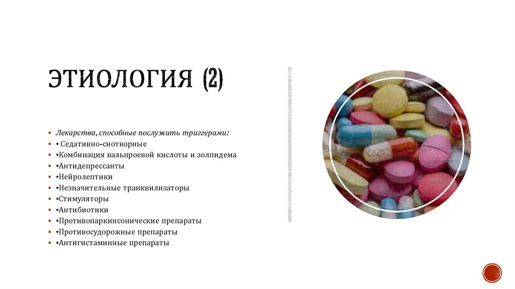 Лекарства, способные послужить триггерами:• Седативно-снотворные