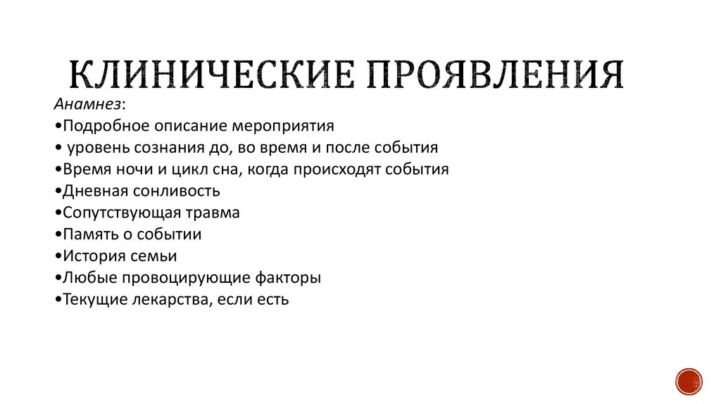 Анамнез:•Подробное описание мероприятия