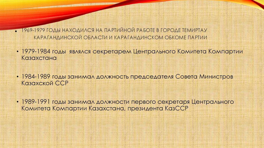 .1969-1979 ГОДЫ НАХОДИЛСЯ НА ПАРТИЙНОЙ РАБОТЕ В ГОРОДЕ ТЕМИРТАУ