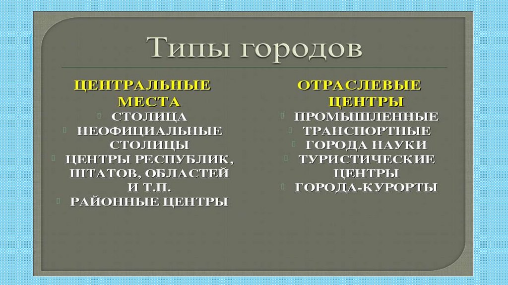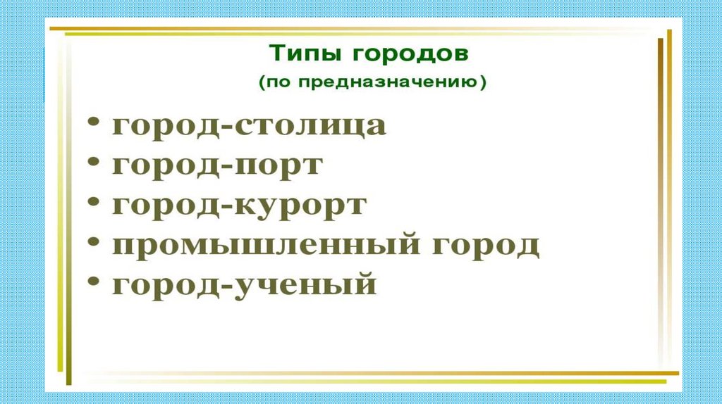 ГОРОДОВ. ТИПЫ ГОРОДОВ