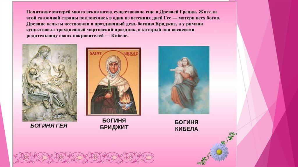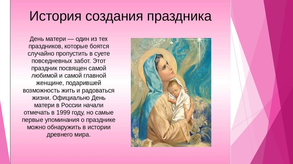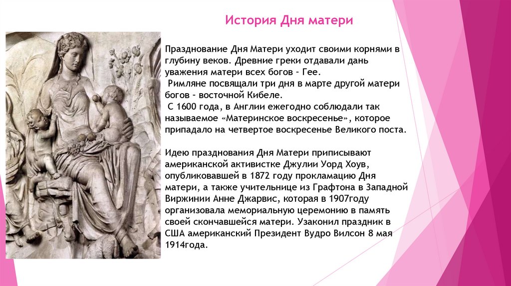 История Дня материПразднование Дня Матери уходит своими корнями в