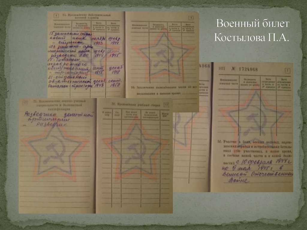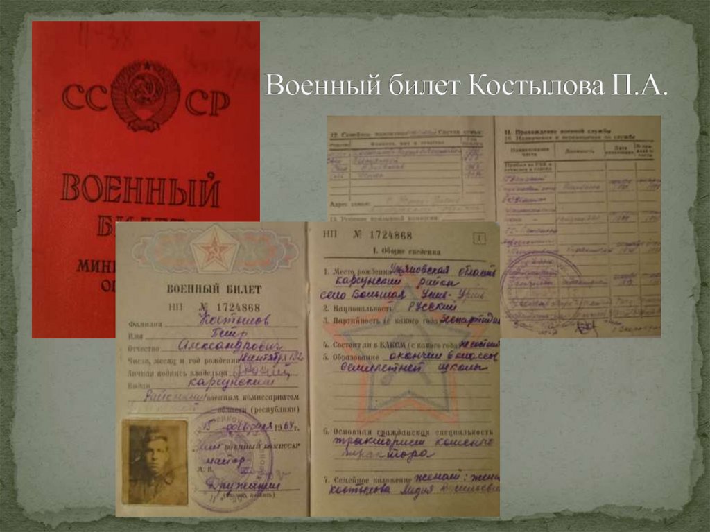 Семья Костыловой Уьяны в годы Великой Отечественной войны