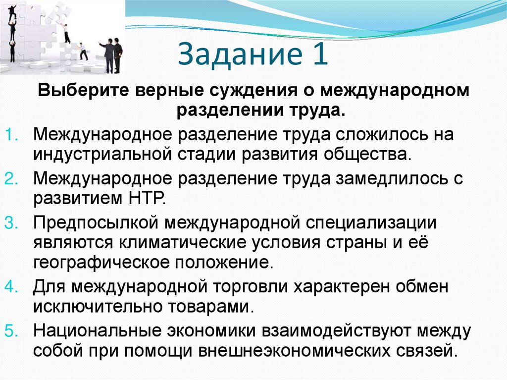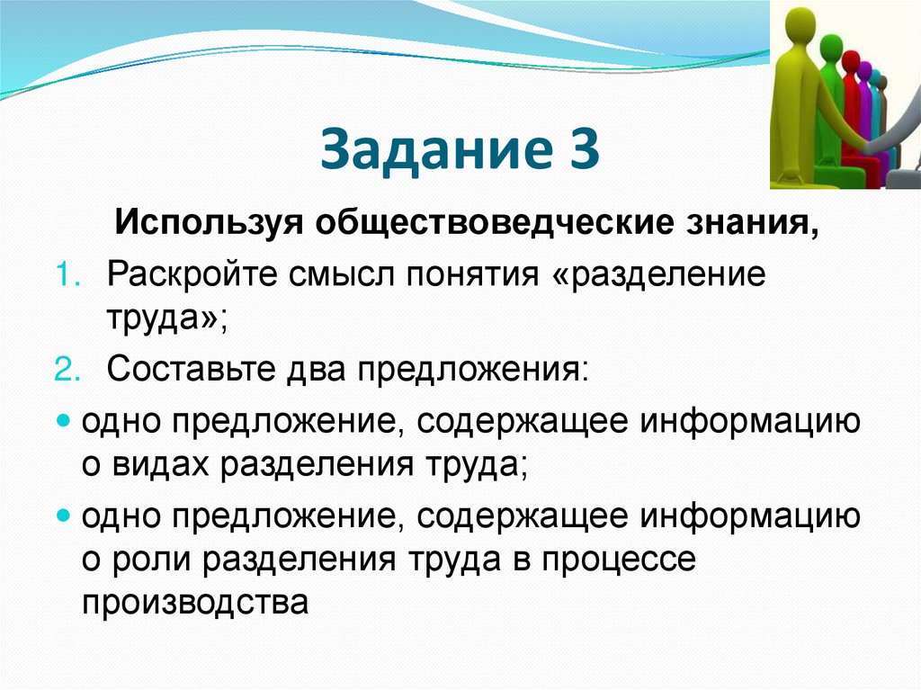 Разделение труда. Задания для выполнения
