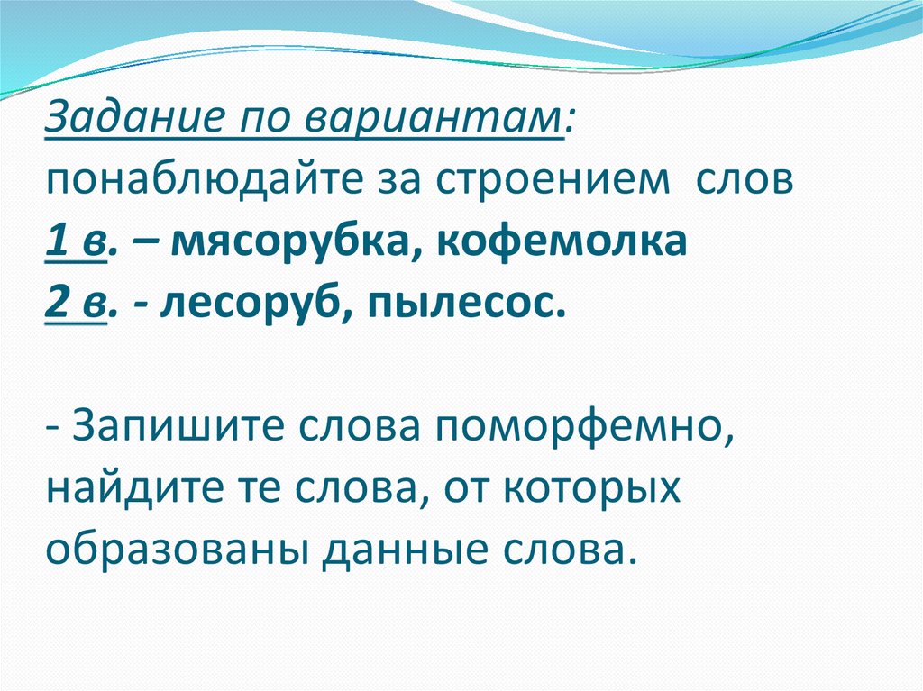 Задание по вариантам:понаблюдайте за строением слов