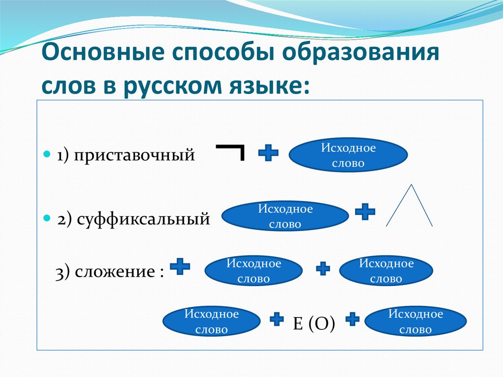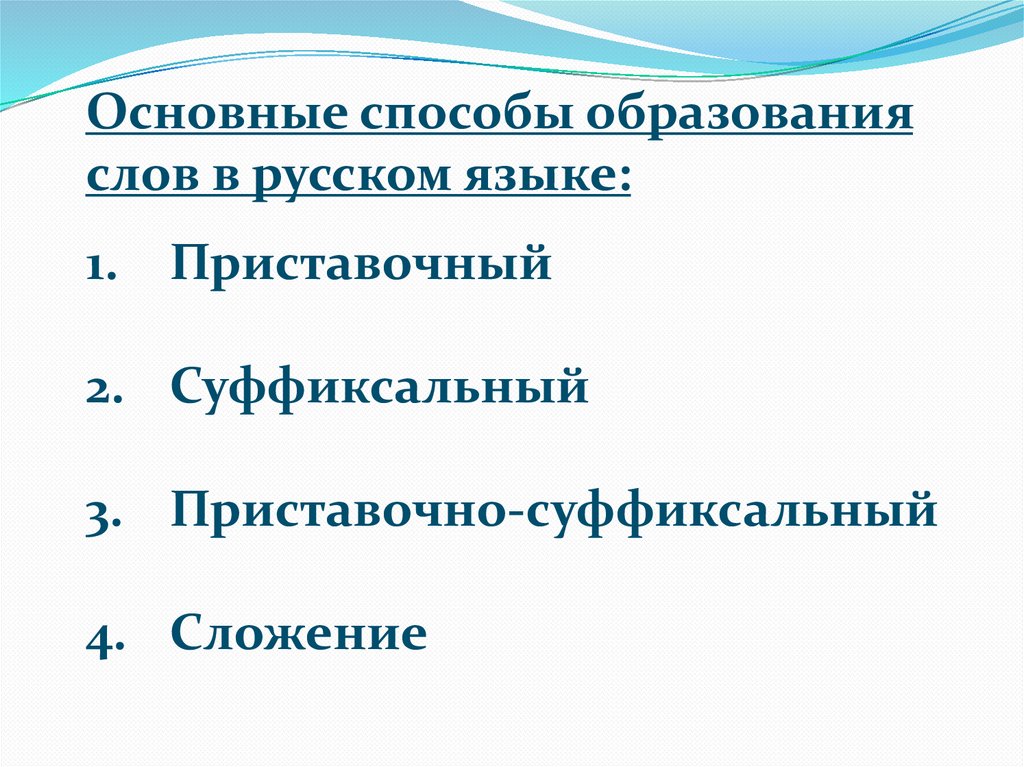 Основные способы образованияслов в русском языке: