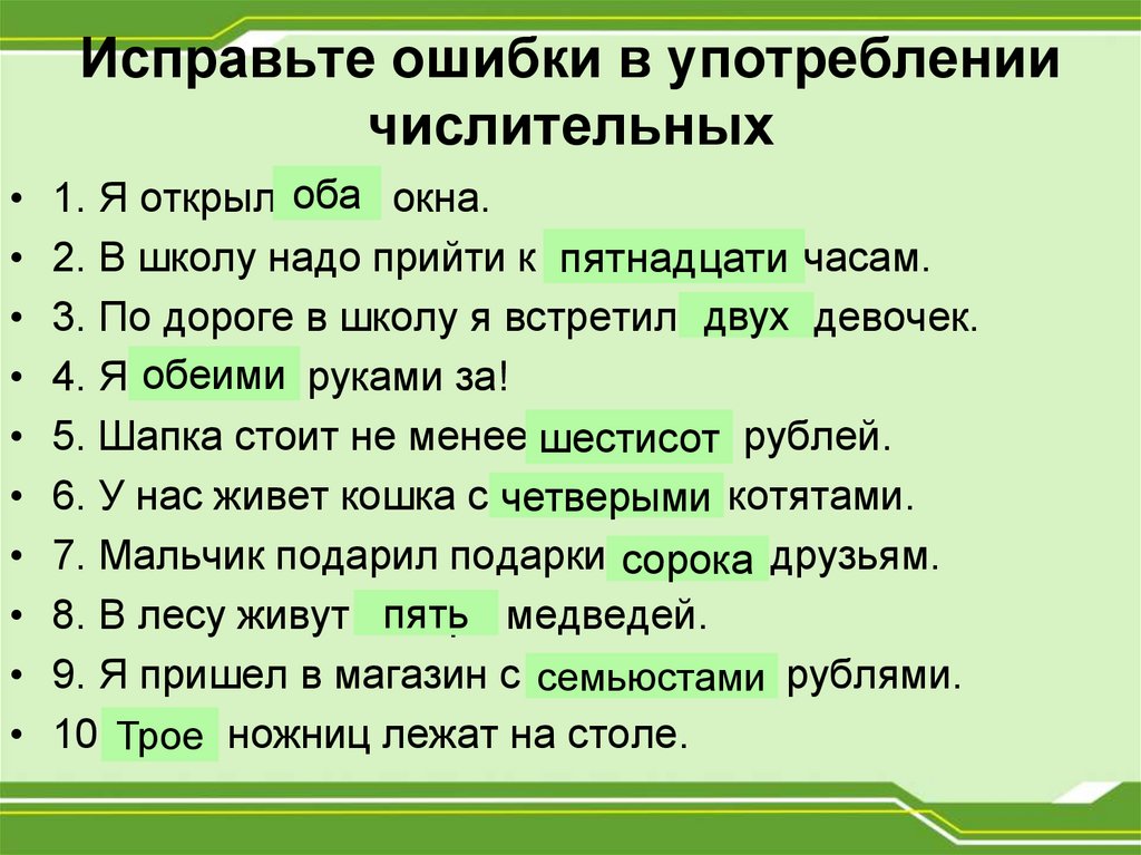 • 4. Числительное ОБА употребляется ссуществительными мужского и среднего