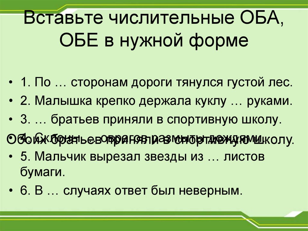 Вставьте числительные ОБА,ОБЕ в нужной форме