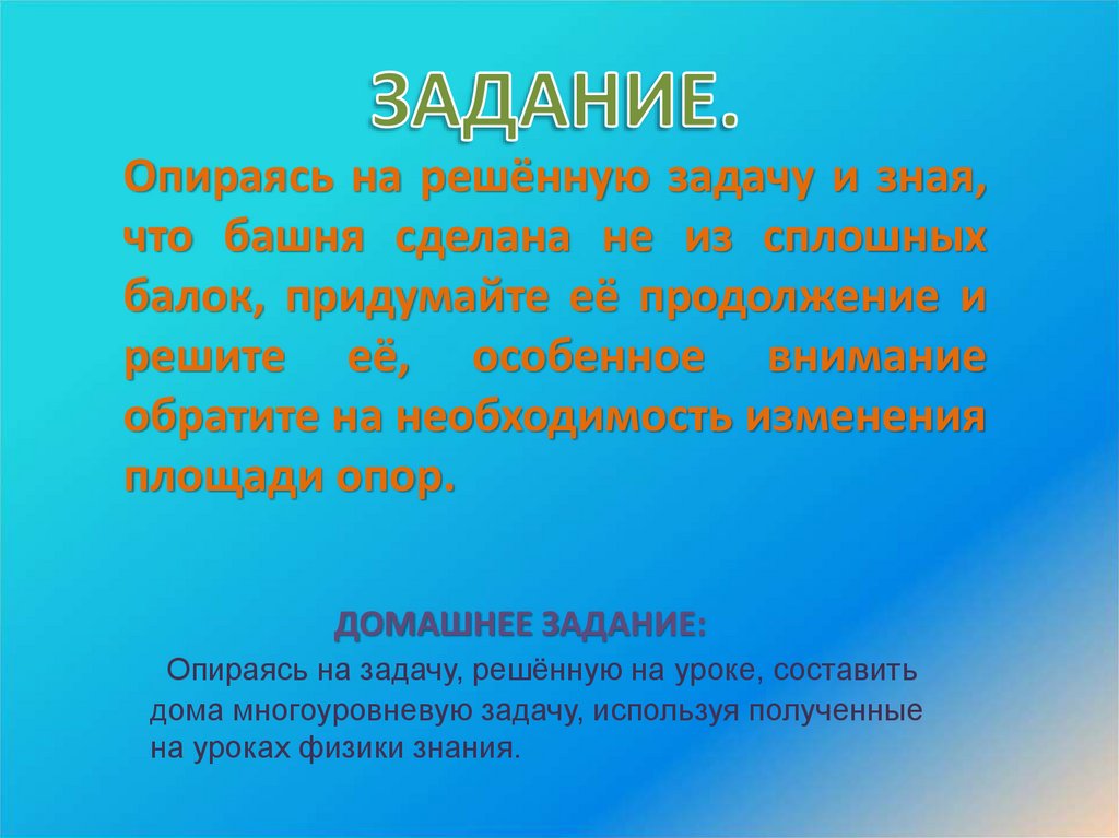 Опираясь на решённую задачу и зная,что башня сделана не из сплошных