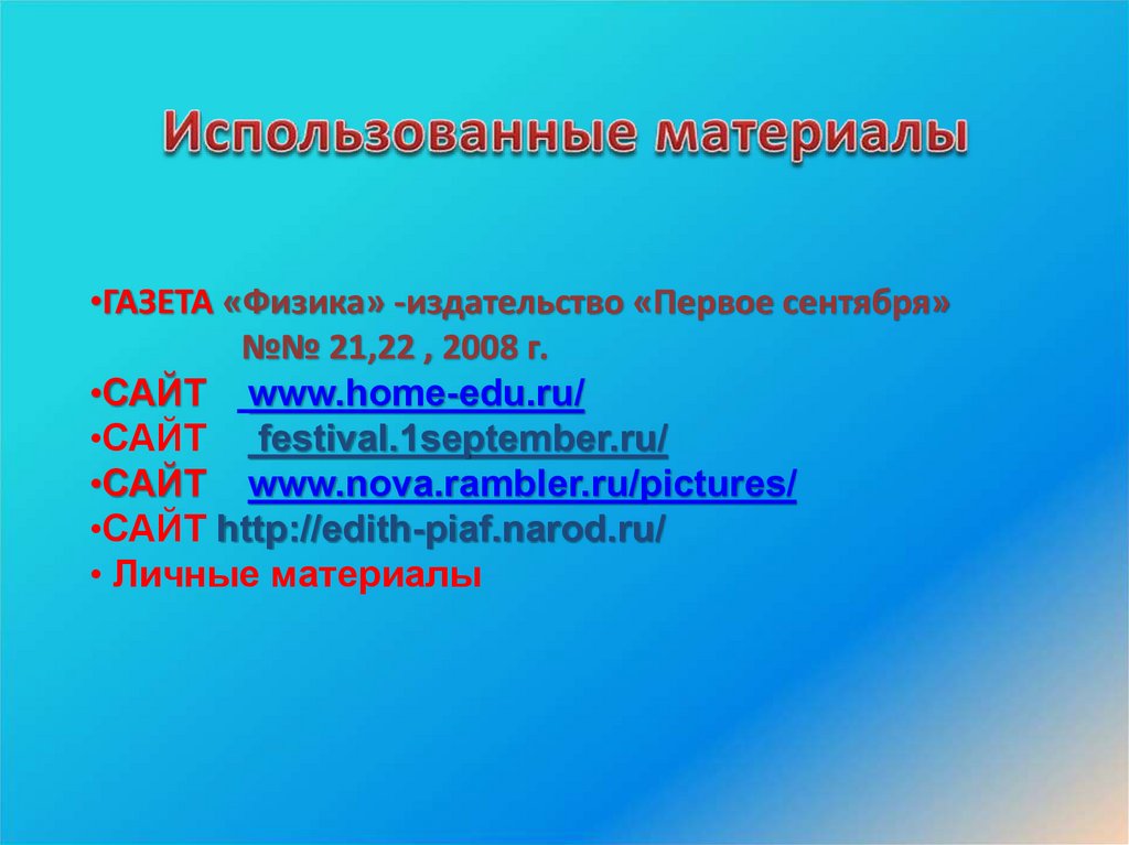 •ГАЗЕТА «Физика» -издательство «Первое сентября»№№ 21,22 , 2008 г.