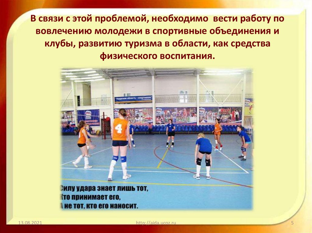 В связи с этой проблемой, необходимо вести работу пововлечению молодежи в спортивные объединения и