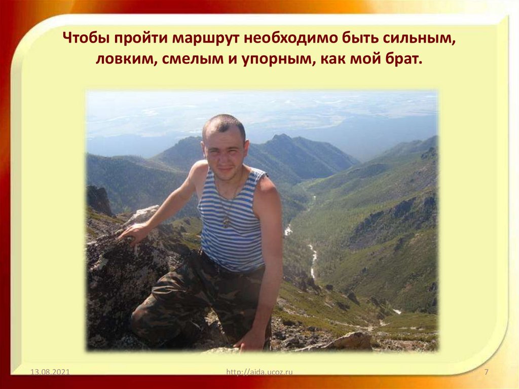Чтобы пройти маршрут необходимо быть сильным,ловким, смелым и упорным, как мой брат.