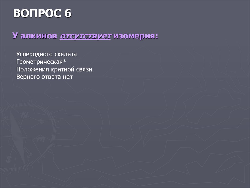ВОПРОС 6У алкинов отсутствует изомерия: