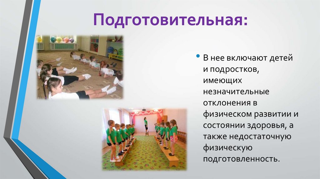 Подготовительная:• В нее включают детей