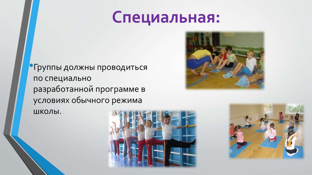 Специальная:•Группы должны проводиться